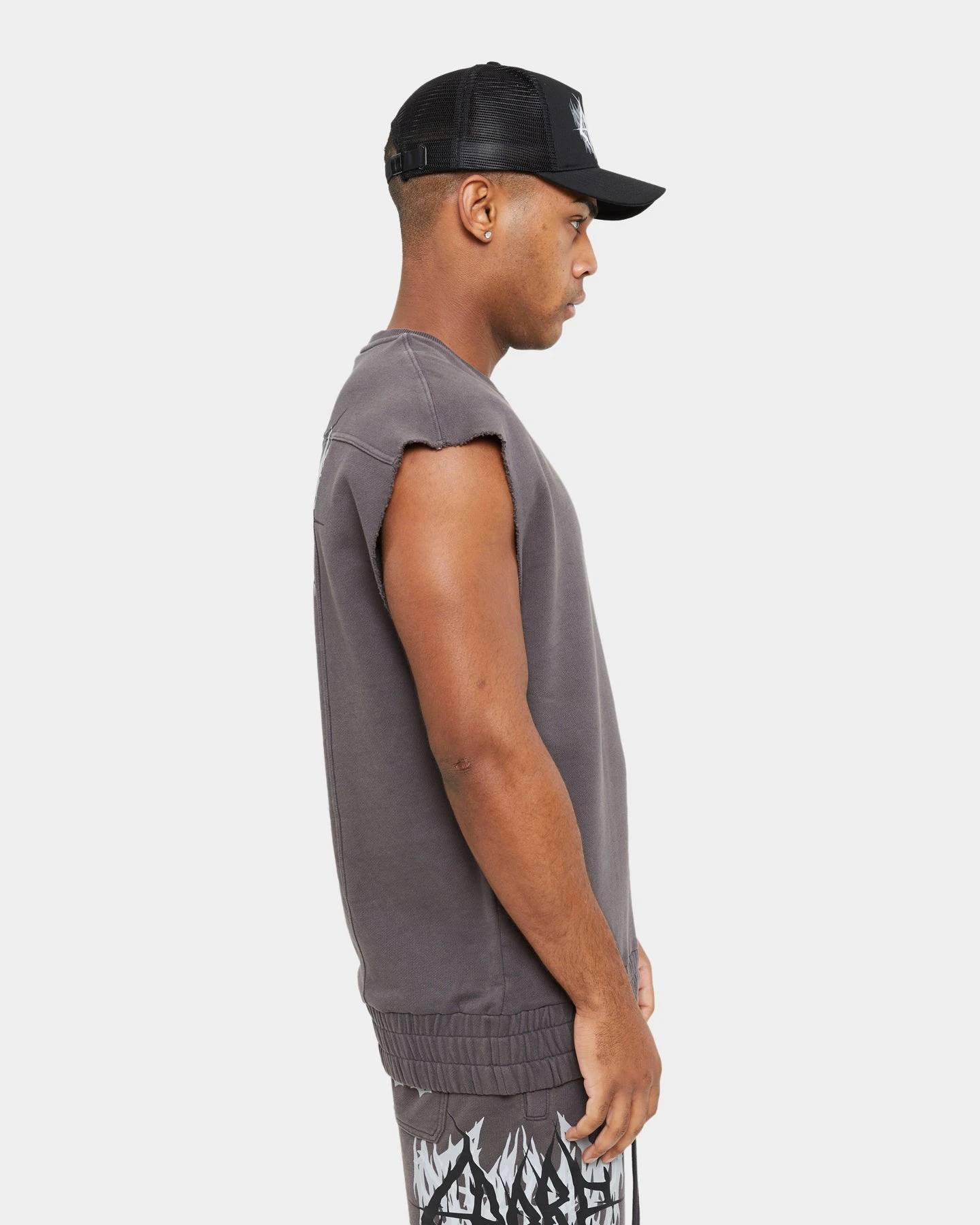 The Metalle Muscle Crewneck is a must-cop for anyone with a fresh set of guns to show off. This crew features cut off arms with raw edges, an elasticated hemline, and a metal-inspired print on the back.