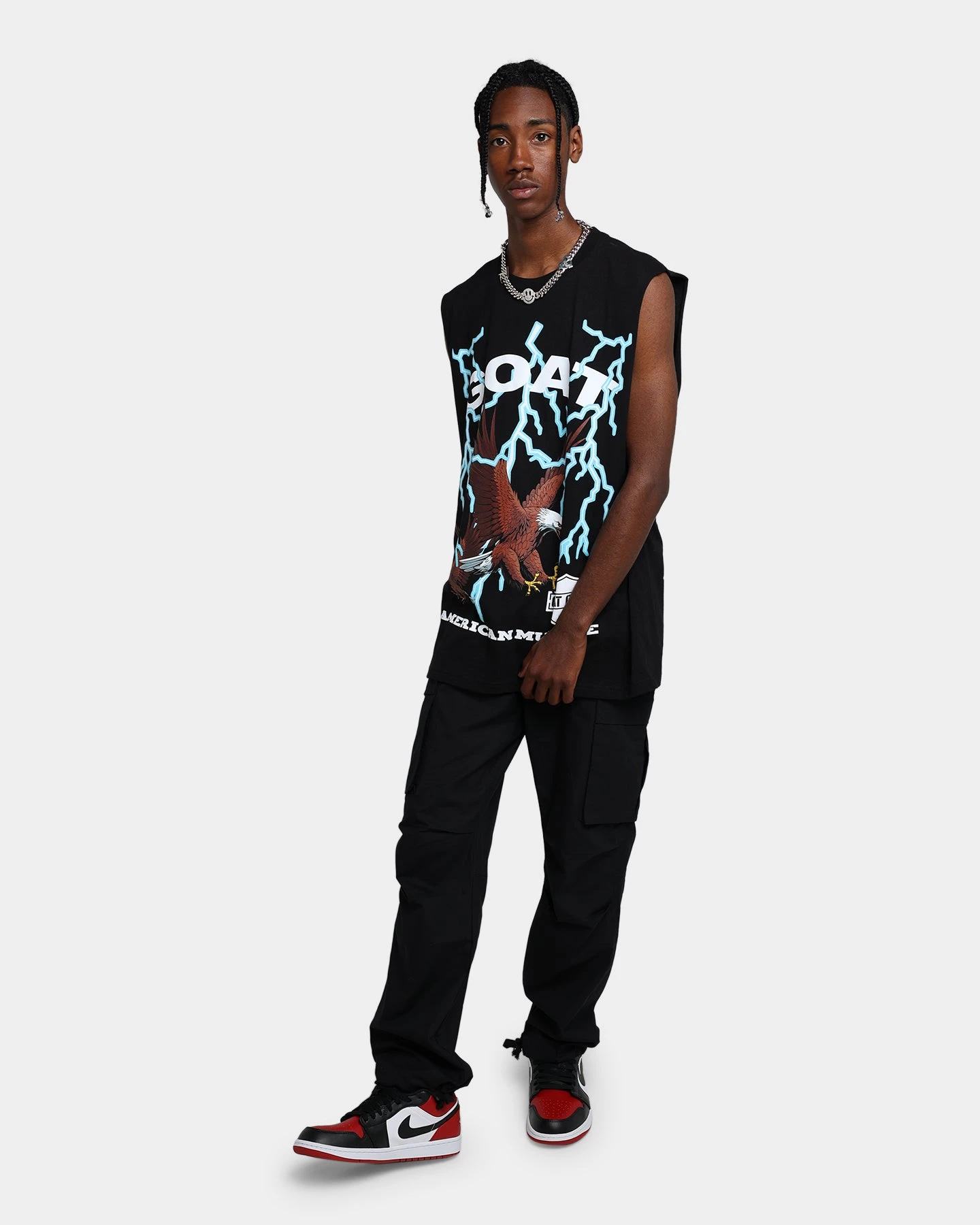 The American Muscle Muscle T-Shirt from Goat Crew electifies your ‘fit with custom graphics to the durable fabric. Printed custom graphics pop from the front and back, with raw edge armholes adding to the relaxed streetwear feel.
