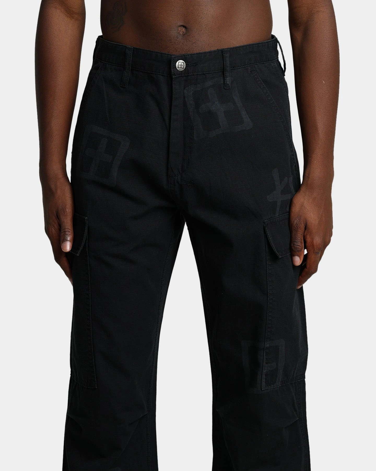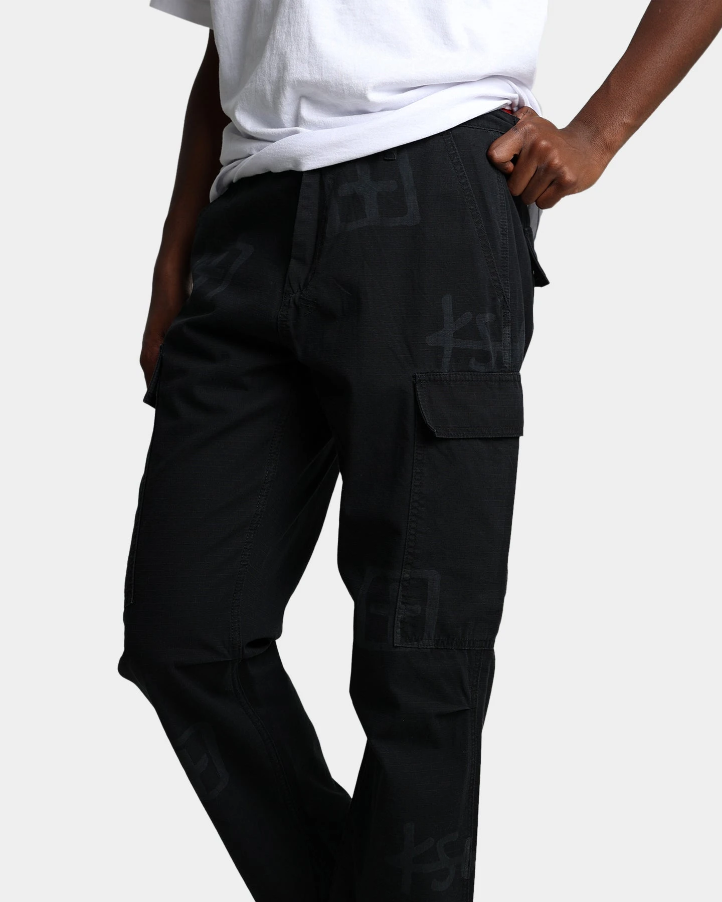 The Fugitive Cargo Pant Kash Box is a loose-fit cargo pant decked out in pockets, making these your go-to for a fire look. This style is made from a cotton ripstop fabric with a laser printed t-box artwork scattered across the leg and detailed with tucks at the knees and drawstrings at the ankles. Signed off with 4×4 cross embroidery on the back and a Ksubi t-box print on the leg to mark your love of the brand. Cop yours today.