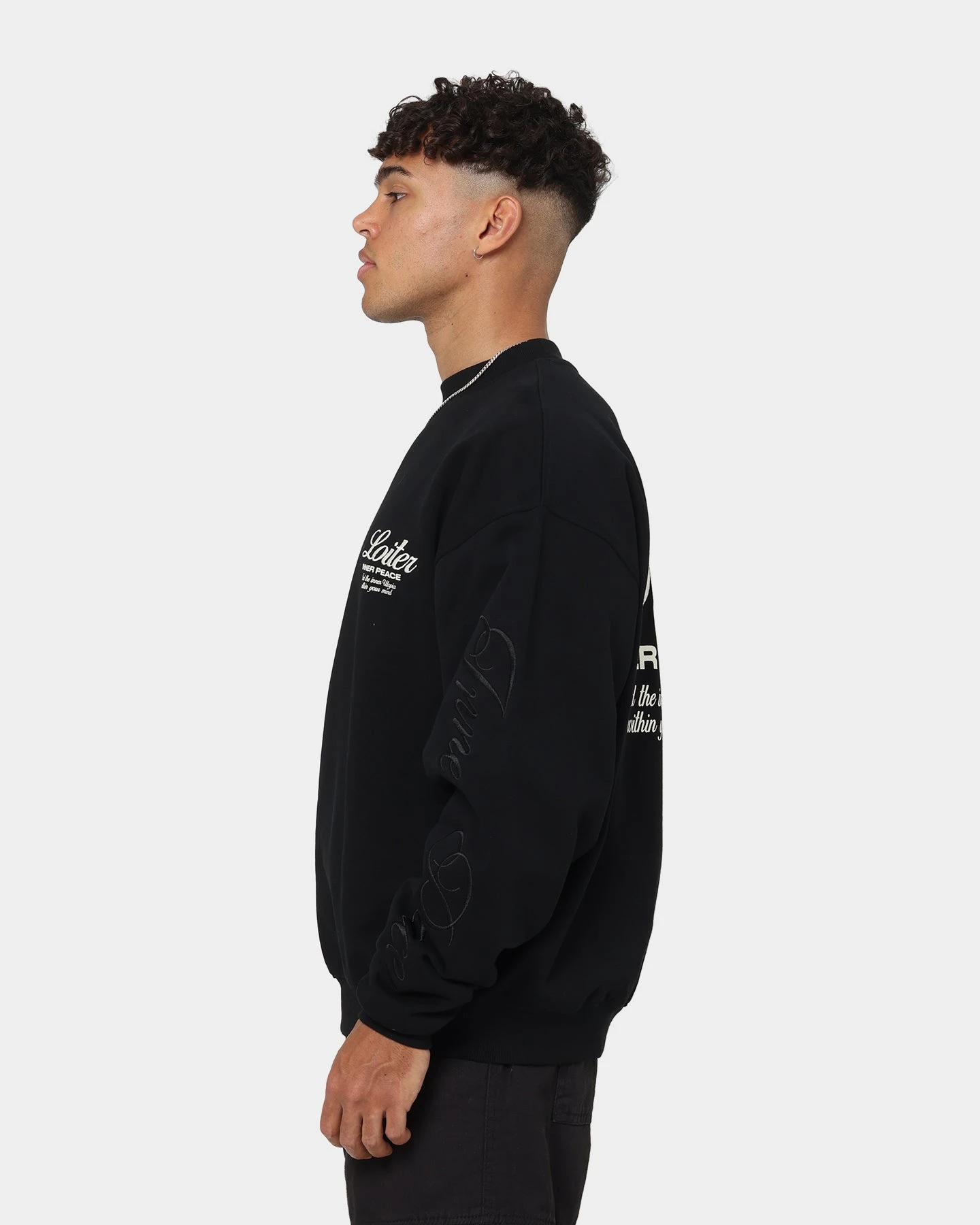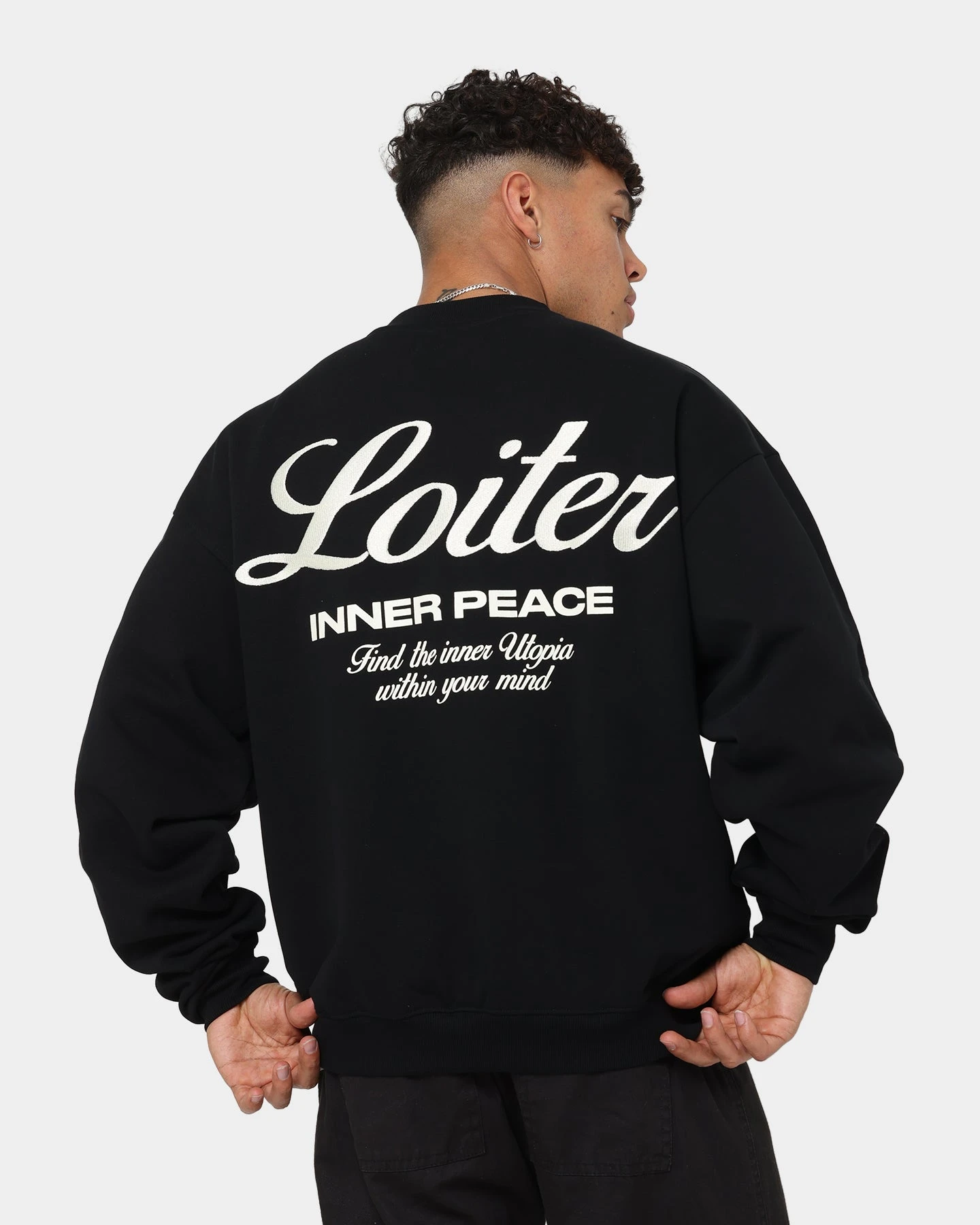Make a striking entrance with the Aura Premium Crewneck. Featuring Loiter print and embroidery to the front and back on a premium cotton construction with ultra-soft fleece lining, you’ll live in this staple crew.