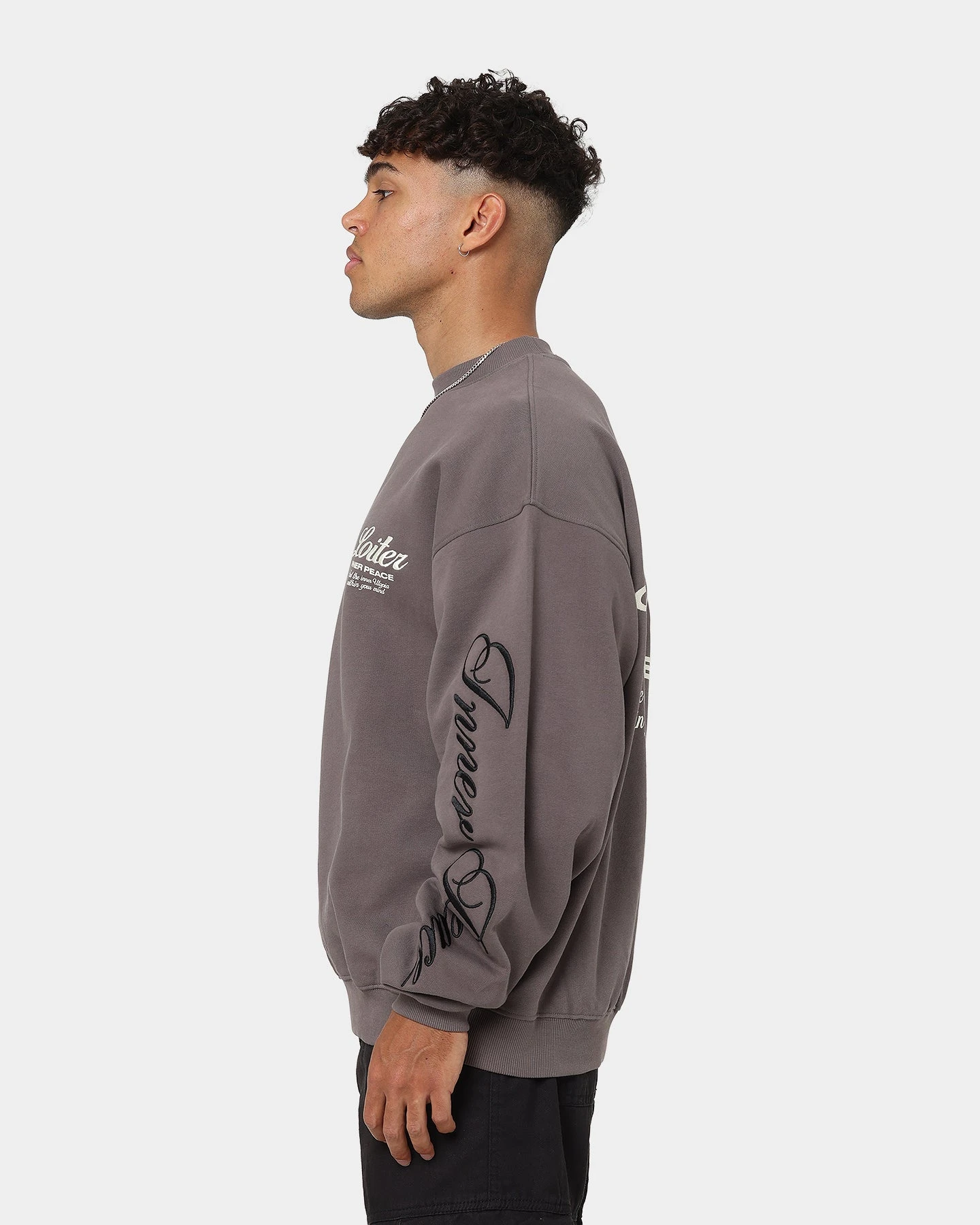 Make a striking entrance with the Aura Premium Crewneck. Featuring Loiter print and embroidery to the front and back on a premium cotton construction with ultra-soft fleece lining, you’ll live in this staple crew. Twin needle stitching and a ribbed crewneck ensure this piece is made to last through the seasons. Cop yours today!