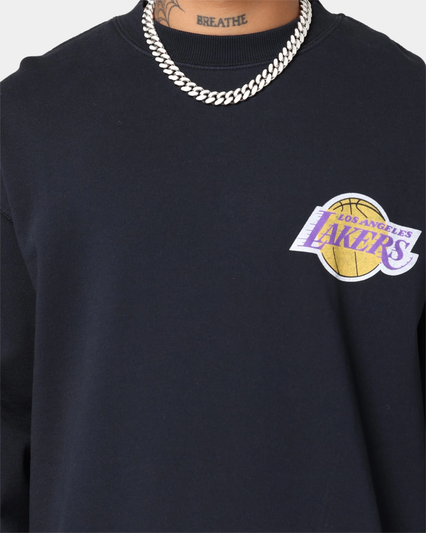 The heroes are in the building with the Los Angeles Lakers Champ Crewneck. Featuring custom Team graphics to the chest and arms, all on a premium twin-needle construction. The faded black colourway gives a vintage look and feel to this crew, and with a soft fleece lining and ribbed trims to keep you toasty, you’ll live in this crew.