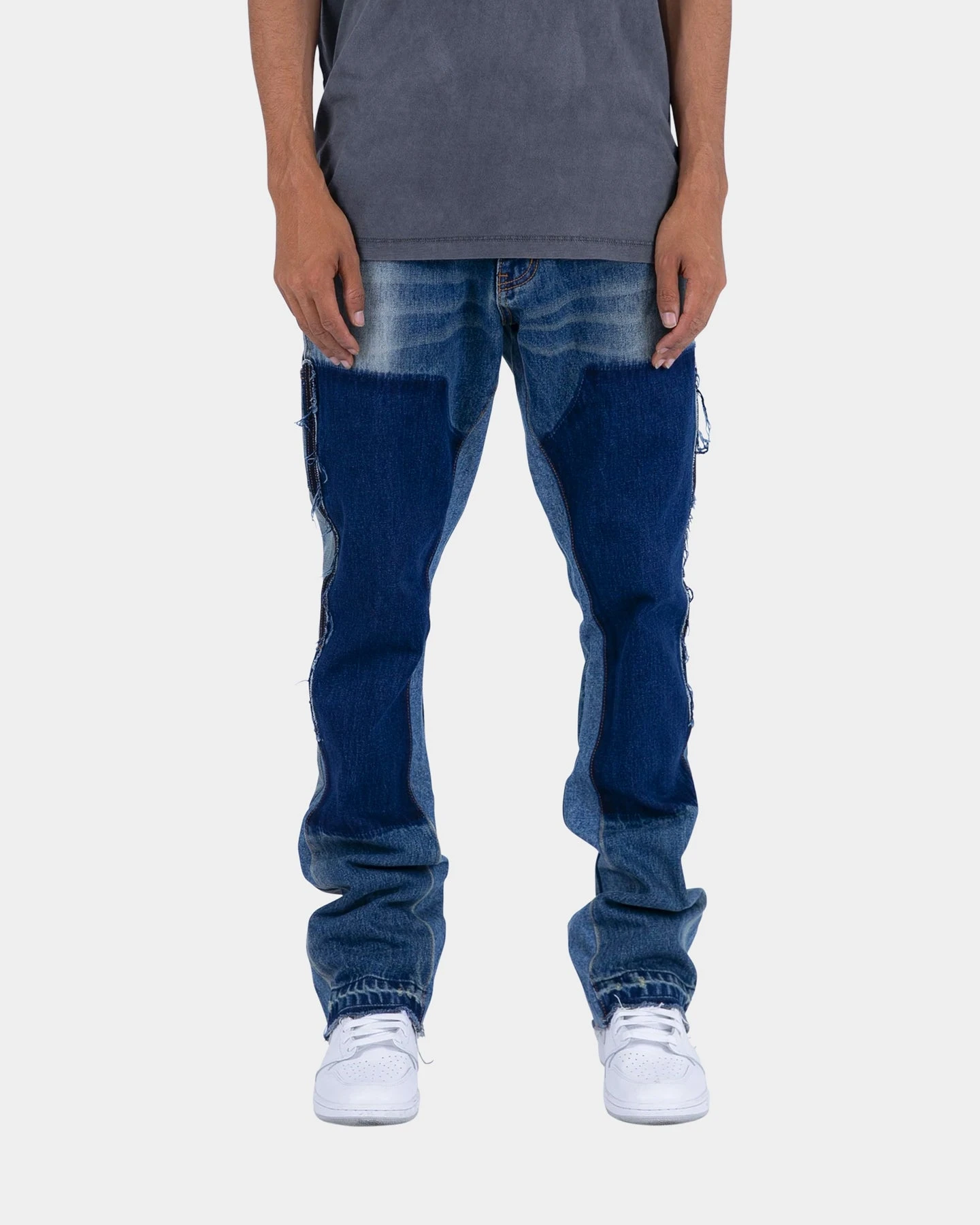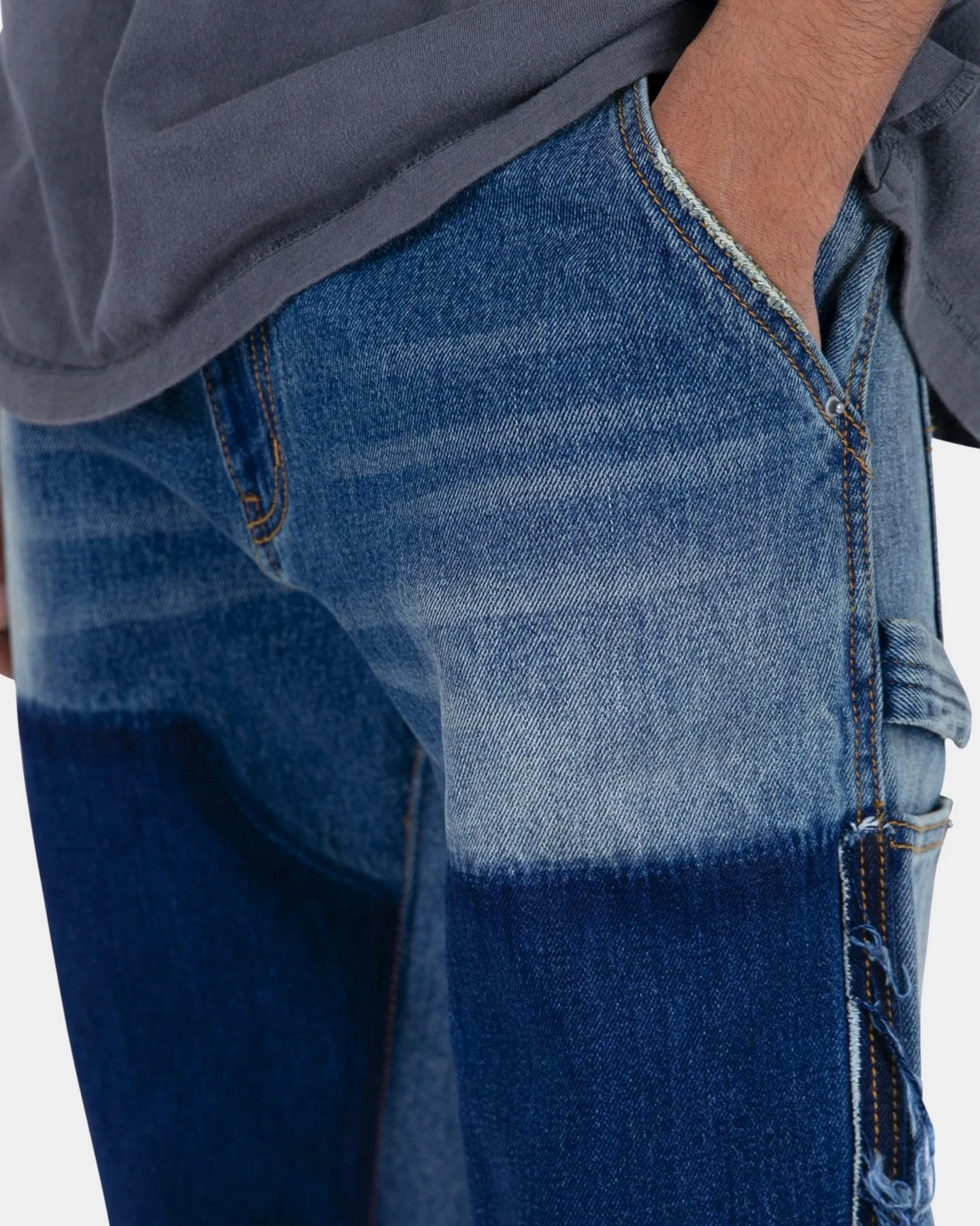 – Contrasting washed denim panels