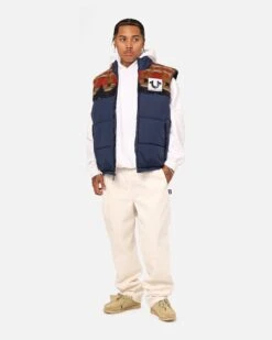 True Religion Southwestern Puffer Vest Dress Blue