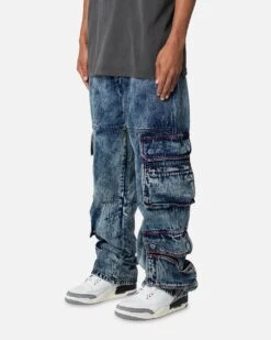 MNML Contrast Ultra Baggy Cargo Denim Jeans Blue