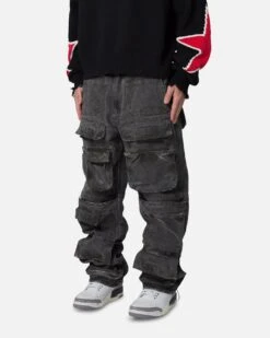 MNML Baggy Rave Cargo Denim Jeans Washed Black