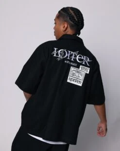 Loiter Witness Button Up T-Shirt Black