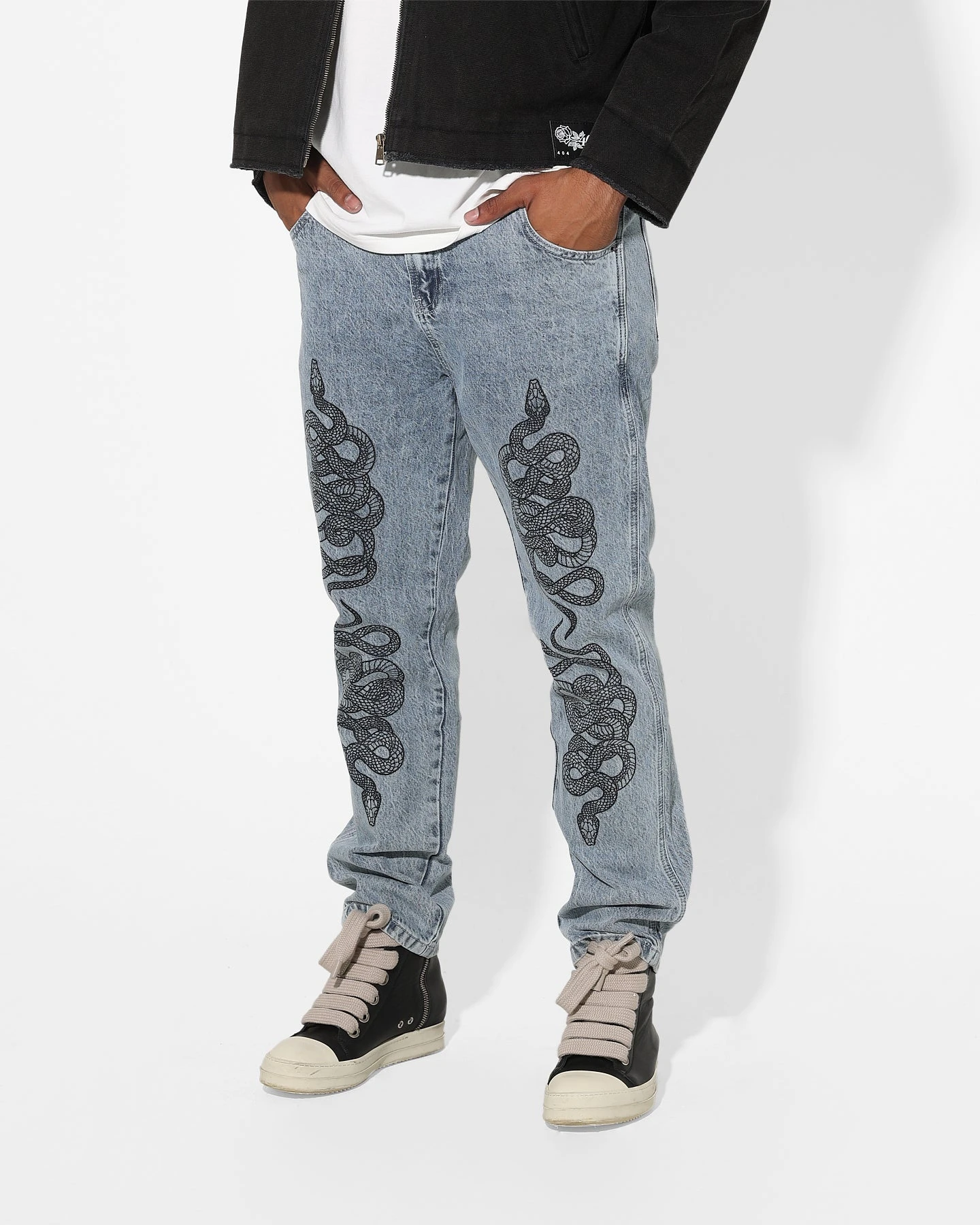 You can’t go wrong with a solid pair of jeans like the Death Adder Relaxed Jeans from Saint Morta. Featuring relaxed denim, snake print, and Saint Morta embroidery. Cop yours today!
