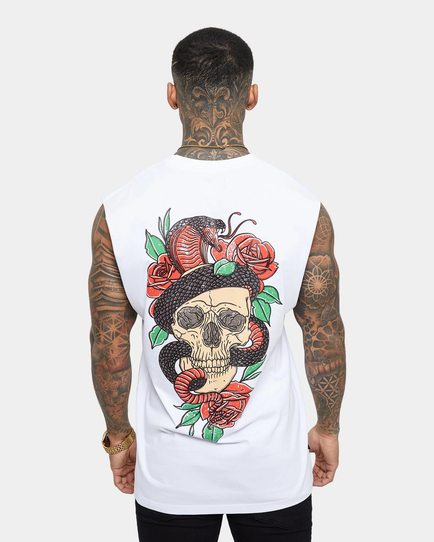 Dare to test the boundaries with the Forbidden Muscle Singlet. Sick Saint Morta graphics feature to the front and back on a vintage wash, creating daring vibes. Cop this sick muscle tee today!