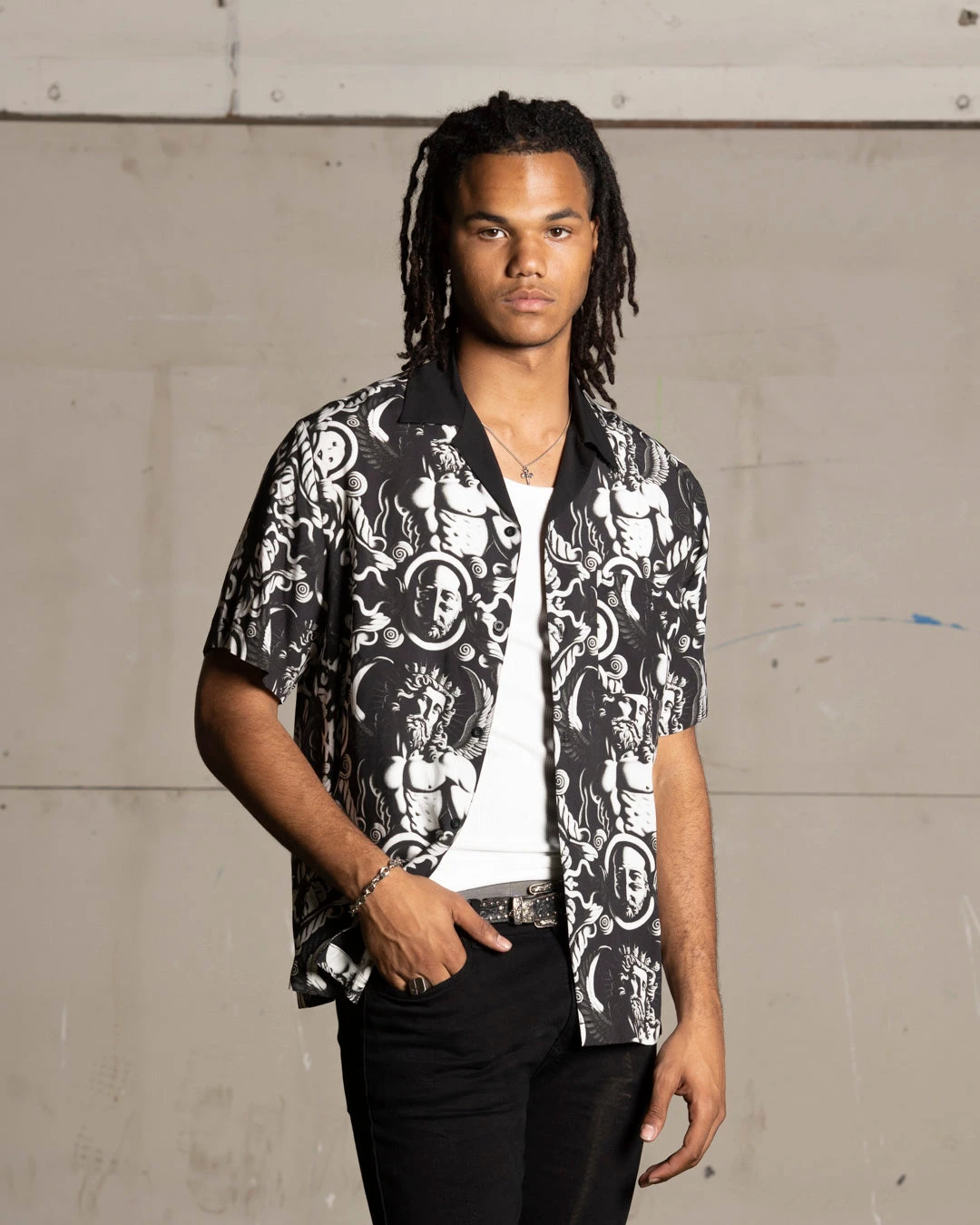 Make a statement in the Mad God Short Sleeve Shirt. This shirt features a full button close, all over graphics that’ll have all eyes on you and an ultra comfortable, lightweight feel. Cop yours today.
