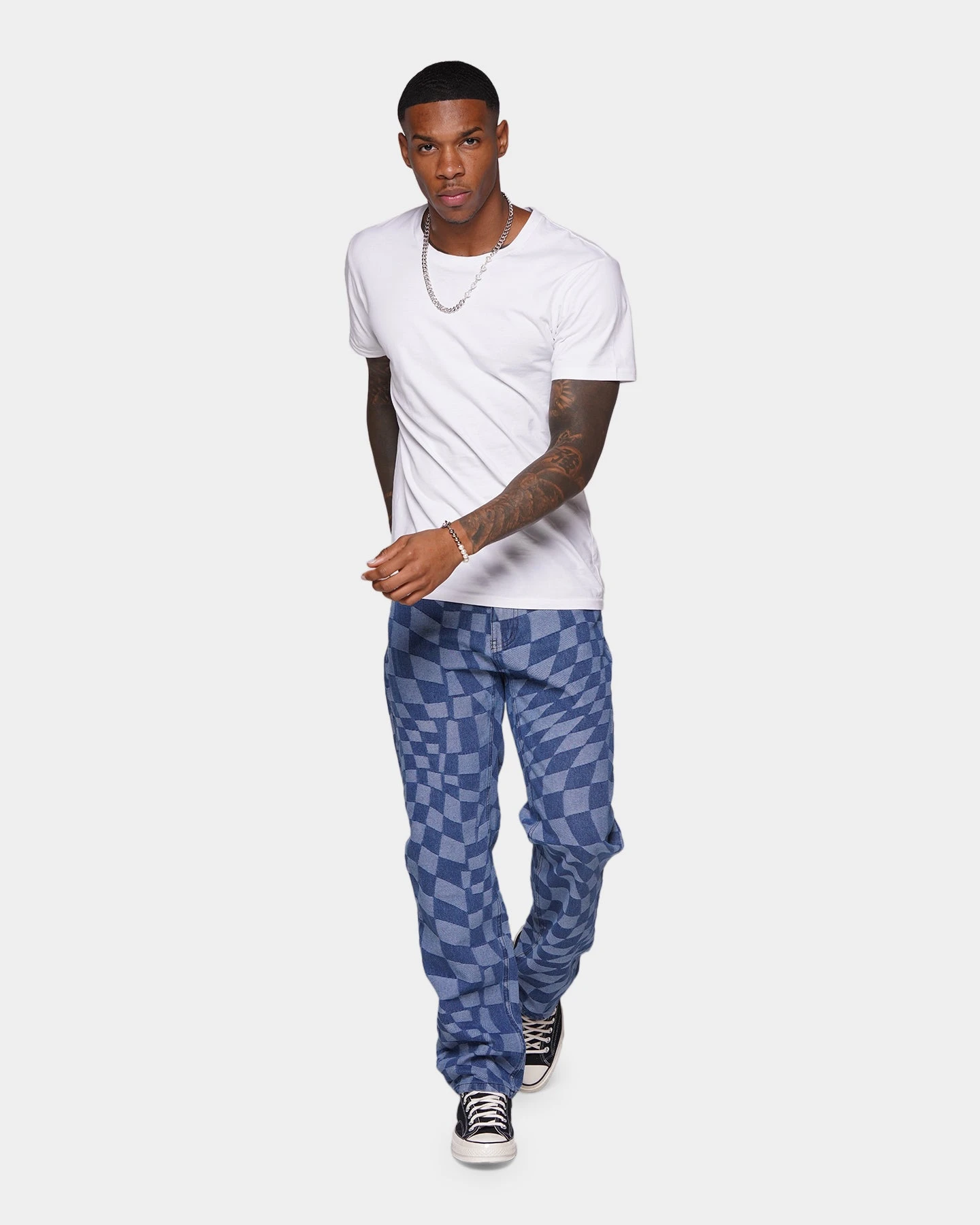 – All-over geometric check print